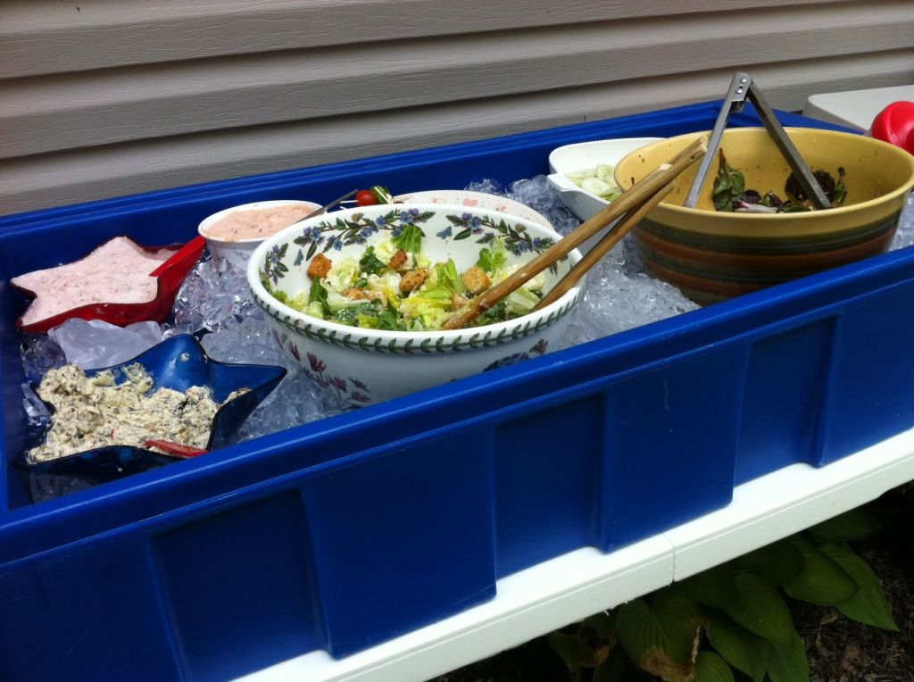 - Group foods together to create thermal mass, which will help them stay cooler for longer.